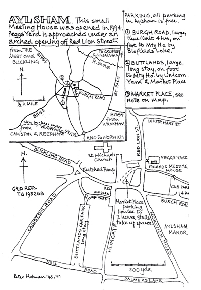 Peter Holman, one of our meeting's founder members, created a series of maps showing the locations of all the meetings in the Norfolk and Waveney Area Meeting. This is Aylsham's: